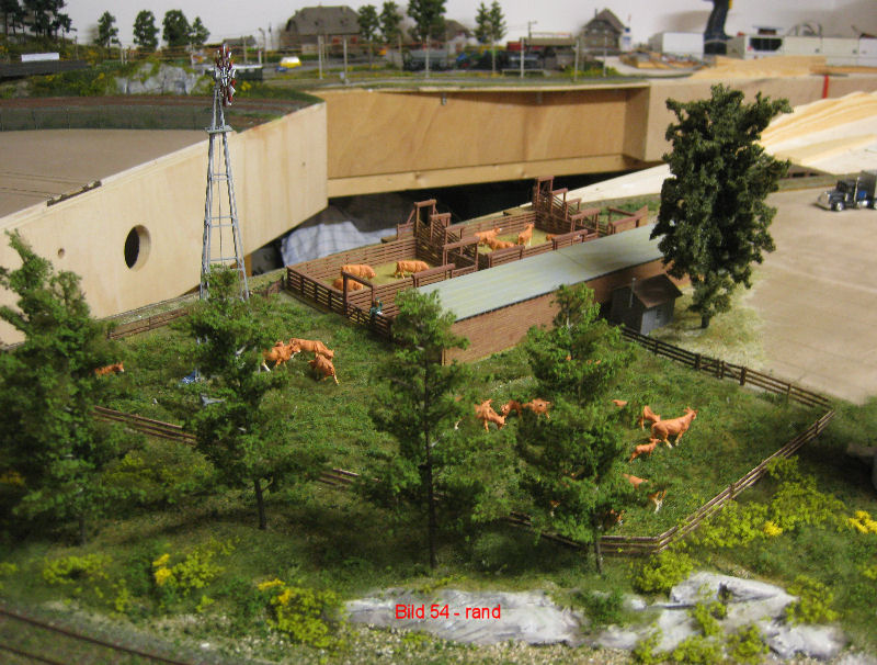 Bild 54 - Auch die Viehverladung ist (fast) fertig. Es fehlen noch Büsche an den Rändern des Gebäudes. Vor dem Zaun zur Ladestraße hin werden später die Mitarbeiter und Ihre Pferde bzw. Fahrzeuge Platz finden.