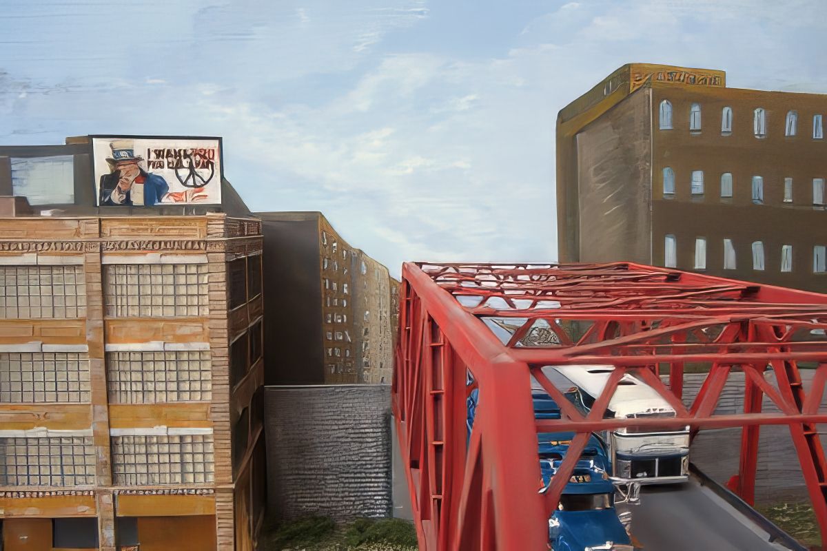 Bild 3 - Blick auf unsere Backwarenfabrik mit fertigem Hintergrund. Der gealtertete Big-Boy macht sich nun natürlich besonders gut.